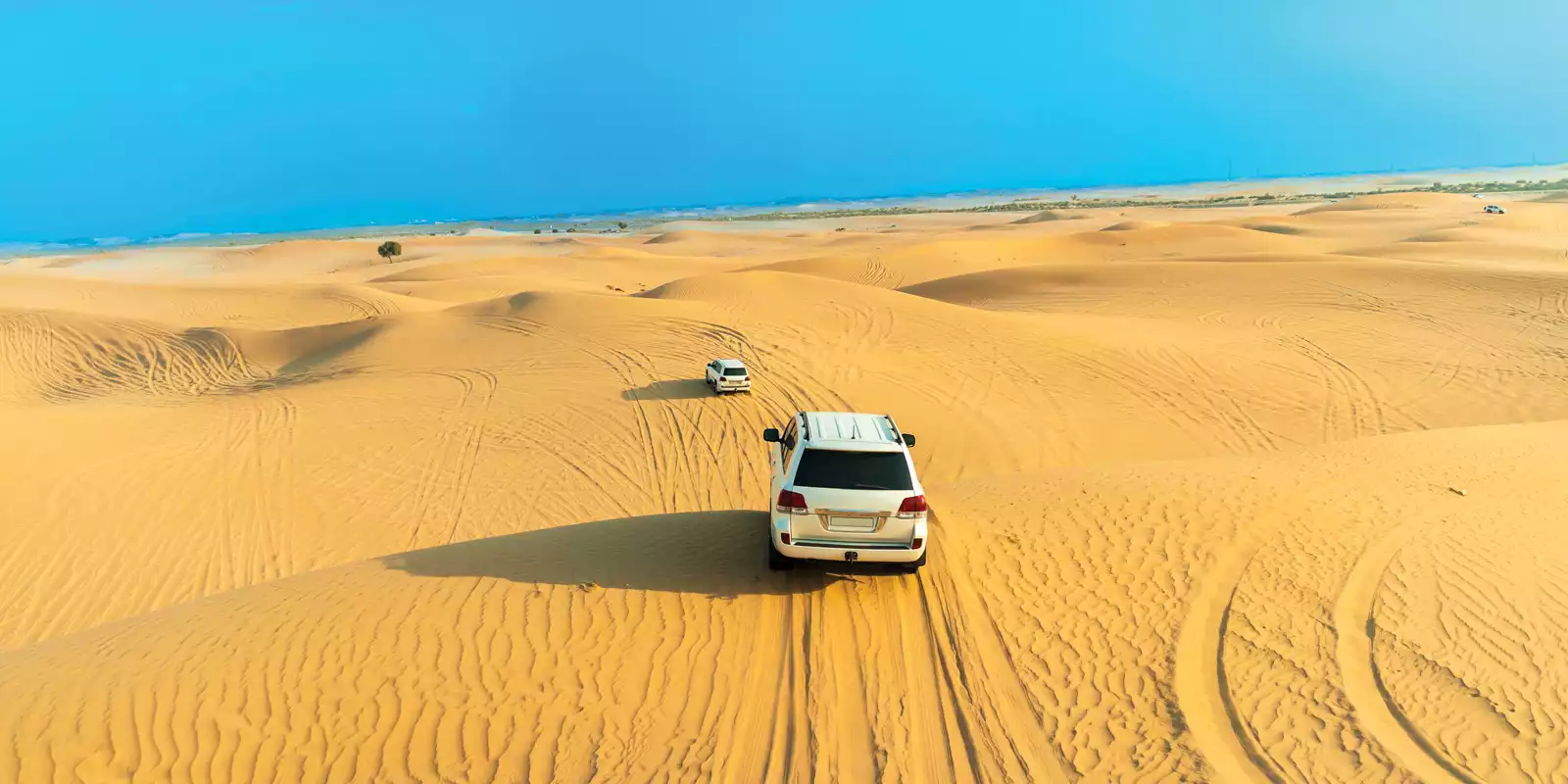 The day is at leisure before you head out into the desert for a magical evening. View falcons at an amphitheatre before an exciting drive into the sand dunes, with a stop at the perfect spot for sunset. Visit a Bedouin-style camp for a delicious Arabic-style buffet under the stars.