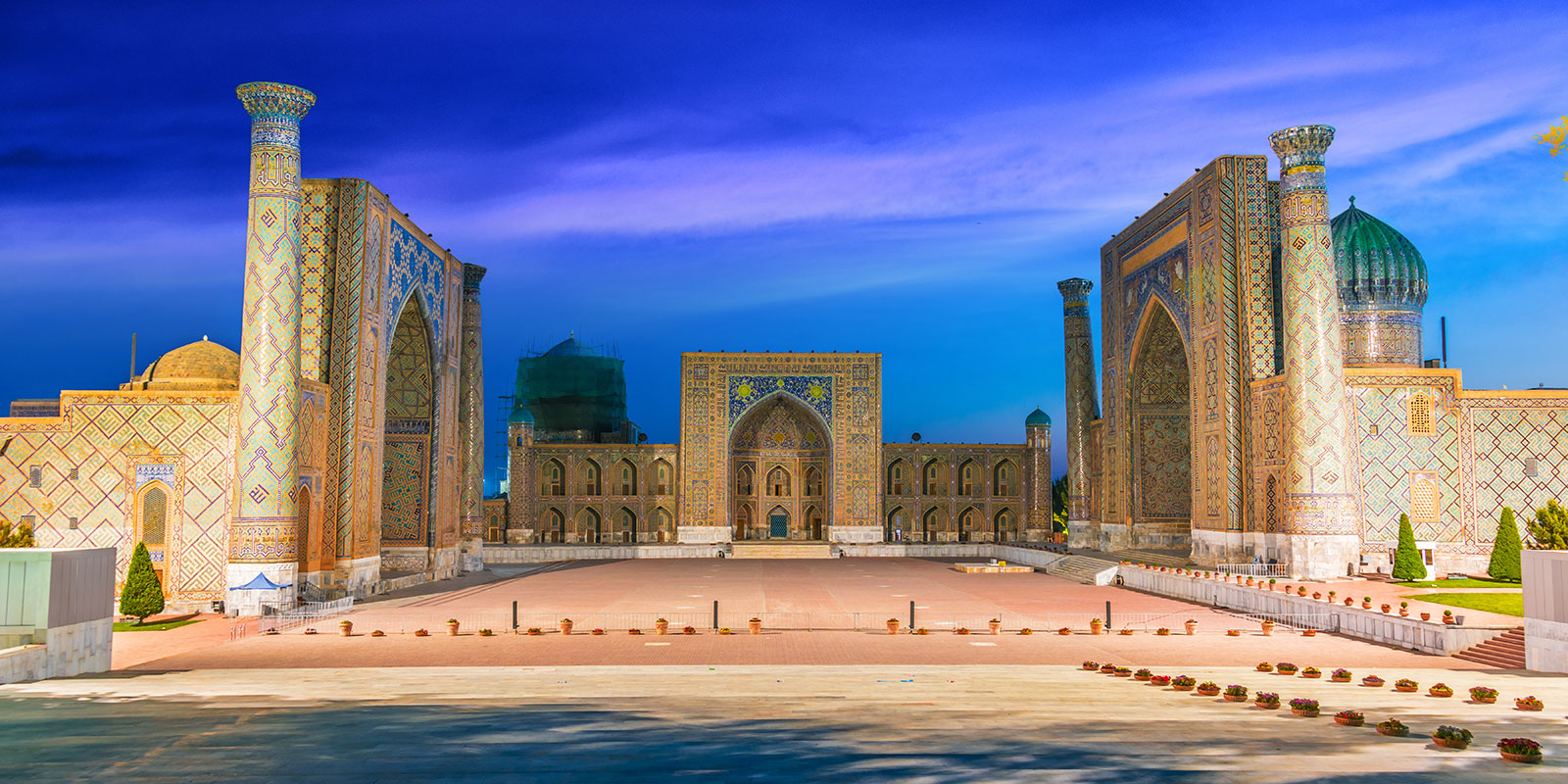 The Registan is a majestic square at the heart of Samarkand, lined on three sides by the exquisite, turquoise-tiled facades of three madrasahs (Islamic schools).
