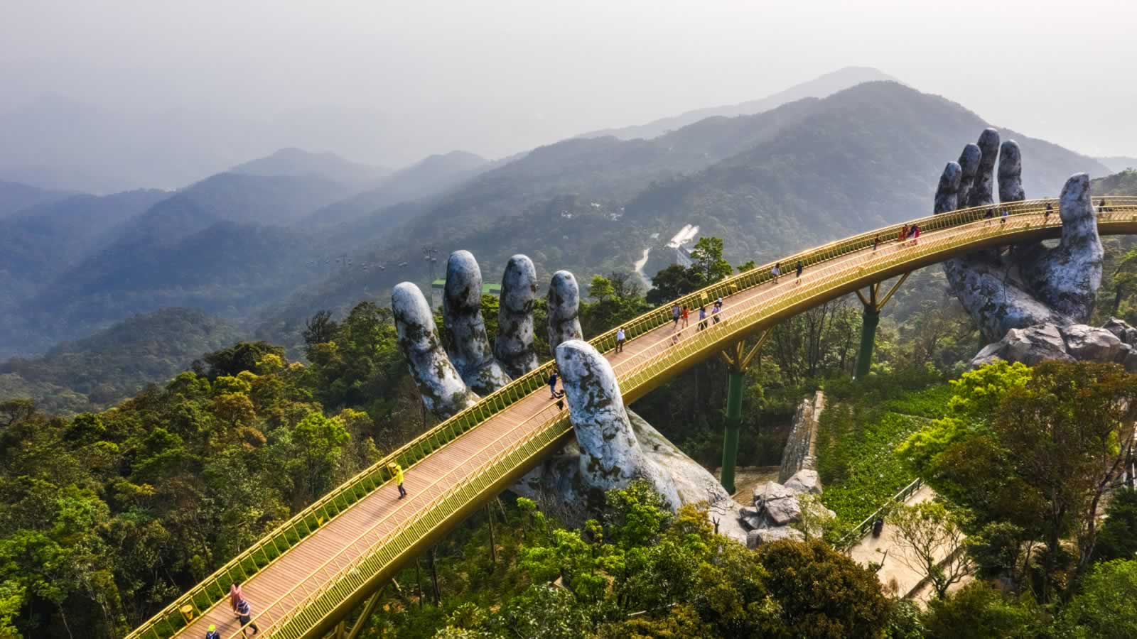 After breakfast, drive approximately 4 hours to Hoi An, this journey will take you over the scenic Hai Van Pass. Stop en-route at Ba Na Hills for lunch, visiting the Golden Bridge, a beautiful bridge held by gigantic stone hands with panoramic views. Please note: To visit Ba Na Hills and the Golden Bridge, you will take a 30-minute cable car journey up the hill, with scenic views. There is a small altitude adjustment as it is at 1400m